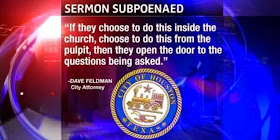 -- From "City subpoenas pastors' sermons in equal rights ordinance case" by Katherine Driessen, Houston Chronicle 10/14/14